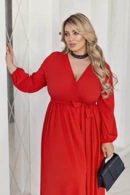 Неймовірно жіночна довга сукня у вечірньому стилі із софта (легка тканина. розтяжності немає). Ліф сукні виконано на запАх. Рукави довгі, на резинці по низу. Талія відрізна, зібрана на резинку. Спідниця форми сонцекльош. Пояс із основної тканини в комплекті. Застібок, кишень немає.