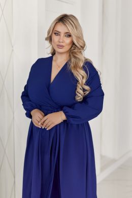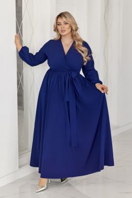 Неймовірно жіночна довга сукня у вечірньому стилі із софта (легка тканина. розтяжності немає). Ліф сукні виконано на запАх. Рукави довгі, на резинці по низу. Талія відрізна, зібрана на резинку. Спідниця форми сонцекльош. Пояс із основної тканини в комплекті. Застібок, кишень немає.