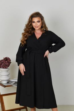 Неймовірно жіночна довга сукня у вечірньому стилі із софта (розтяжності немає). Ліф сукні та спідниця на запАх, по талії зібрана на резинку. Рукави довгі, на манжеті. Пояс із основної тканини в комплекті. Кишень, застібок немає.