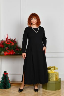 Силует сукні довгий, напівприталений. Виріз горловини круглий, рукави повної довжини. Лінія талії відрізна, трохи занижена, спідниця із защипами, в бічних швах оброблені кишені. Застібки немає. Внизу з боків розрізи, що додає образу жіночності. Сукня добре приховує будь-які недоліки та робить силует стрункішим. Ідеально підійде як для повсякденних справ, так і на свята, якщо додати аксесуарів.