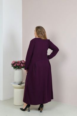 Силует сукні довгий, напівприталений. Виріз горловини круглий, рукави повної довжини. Лінія талії відрізна, трохи занижена, спідниця із защипами, в бічних швах оброблені кишені. Застібки немає. Внизу з боків розрізи, що додає образу жіночності. Сукня добре приховує будь-які недоліки та робить силует стрункішим. Ідеально підійде як для повсякденних справ, так і на свята, якщо додати аксесуарів.
