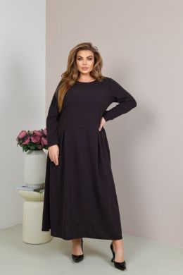 Силует сукні довгий, напівприталений. Виріз горловини круглий, рукави повної довжини. Лінія талії відрізна, трохи занижена, спідниця із защипами, в бічних швах оброблені кишені. Застібки немає. Внизу з боків розрізи, що додає образу жіночності. Сукня добре приховує будь-які недоліки та робить силует стрункішим. Ідеально підійде як для повсякденних справ, так і на свята, якщо додати аксесуарів.