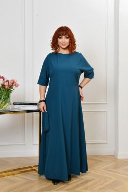 Сукня має відрізну лінію талії, верх силуету «летюча миша», рукав довжиною по лікоть. Виріз горловини круглий. Спідниця у формі трапеції. В бічних швах оброблені кишені. Пояс із основної тканини в комплекті.