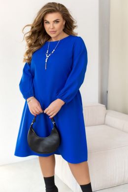 Елегантна та мінімалістична сукня з напівкруглим широким вирізом горловини. З боків - кишені в шві. Рукав вільний, на зап'ястку призібраний резинкою, без манжета. Застібок немає. На грудях діагональні виточки. Прикраса входить в комплект.