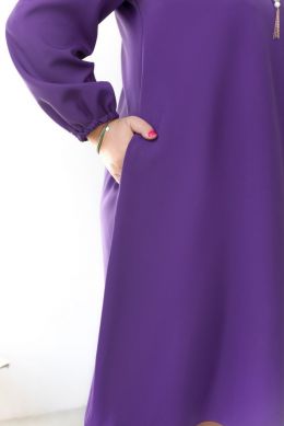 Елегантна та мінімалістична сукня з напівкруглим широким вирізом горловини. З боків - кишені в шві. Рукав вільний, на зап'ястку призібраний резинкою, без манжета. Застібок немає. На грудях діагональні виточки. Прикраса входить в комплект.