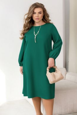 Елегантна та мінімалістична сукня з напівкруглим широким вирізом горловини. З боків - кишені в шві. Рукав вільний, на зап'ястку призібраний резинкою, без манжета. Застібок немає. На грудях діагональні виточки. Прикраса входить в комплект.