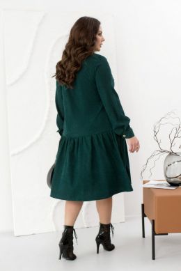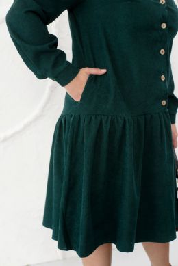 Це жіночна сукня, виконана з м'якої вельветової тканини, зробить ваш образ стильним, модним і вишуканим. Модель доповнена коміром-стійкою, довгими рукавами з манжетами і повітряним грайливим воланчиком, підшитим до подолу, а також кишеннями. Сукня застібається на ряд гудзиків спереду по центру.
