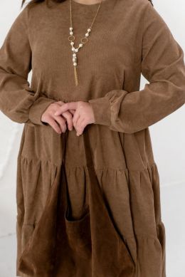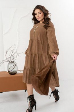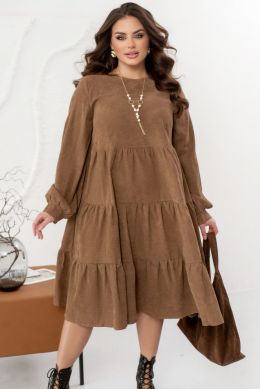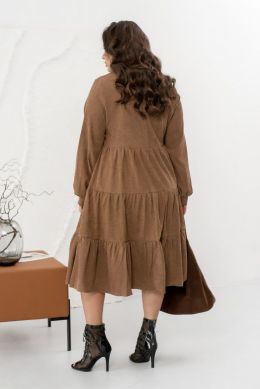 Повітряна сукня А-силуету, виконана з м'якого вельвету, дозволить вам навіть в прохолодну погоду і пору року виглядати жіночно і привабливо. Модель доповнена довгими рукавами з манжетами і застібкою на маленький гудзик під шиєю. Легкий подол, що складається з декількох шарів воланів, зробить ваш образ виразним і незабутнім.