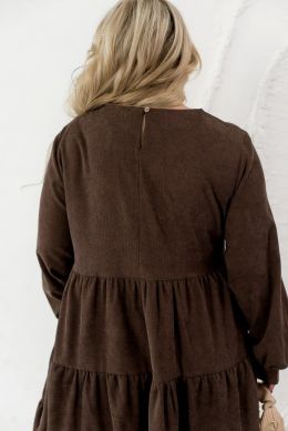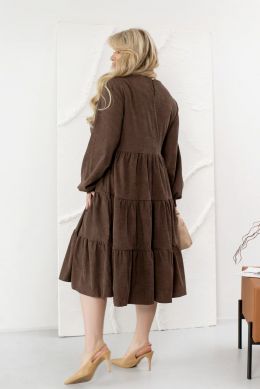 Повітряна сукня А-силуету, виконана з м'якого вельвету, дозволить вам навіть в прохолодну погоду і пору року виглядати жіночно і привабливо. Модель доповнена довгими рукавами з манжетами і застібкою на маленький гудзик під шиєю. Легкий подол, що складається з декількох шарів воланів, зробить ваш образ виразним і незабутнім.