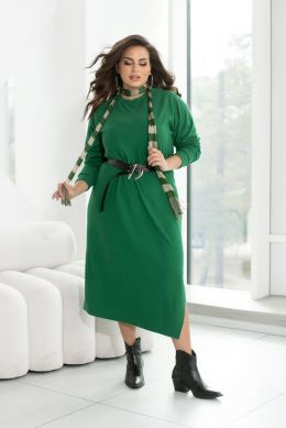 Стильна сукня, виконана з м'якої ангорової тканини, відрізняється універсальністю, а також вдало вписуються в будь-який стиль. Модель лаконічного прямого силуету доповнена довгими рукавами "реглан" з манжетами, а також фігурним вирізом збоку внизу і злегка асиметричним низом, подовженим спереду.