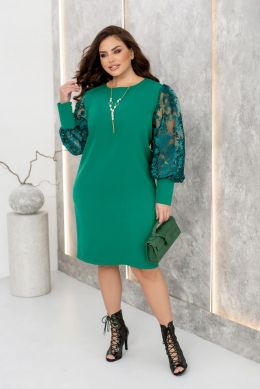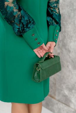 В елегантній монохромній сукні прямого силуету ви будете чарівні і затьмарите всіх на святі або вечірці. Ця модель привертає увагу в першу чергу завдяки об'ємними напівпрозорими рукавами з вишивкою і щільними манжетами з гудзиками. Модель застібається на блискавку по спинці.