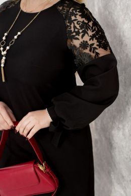 Витончена жіночна сукня стане універсальним рішенням як для зустрічі з друзями, так і для вечірки, роблячи ваш образ стильним, модним і вишуканим. Родзинкою цієї моделі є вставки з ніжного мережива на плечах і довгі рукава з манжетами на зав'язках.