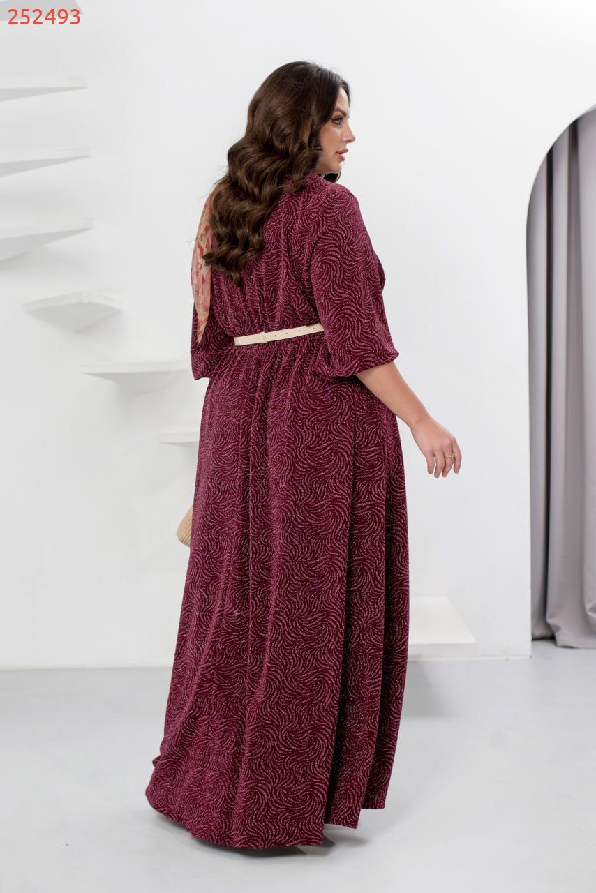 Довга сукня з мерехтливим дизайном – втілення ніжності, жіночності та святкової елегантності. Півкруглий виріз горловини та відрізна лінія талії підкреслюють фігуру, а спадаючі плісовані оборки додають легкості й витонченого руху. Рукави довжиною 3/4 з м’якими резинками на зап’ястках створюють об’єм і делікатний акцент. Вертикальні виточки формують красивий силует, а поясок із комплекту дозволяє обрамити талію, додаючи завершеності образу. Ця сукня м’яко виблискує при кожному русі – ідеальний вибір для особливих моментів, коли хочеться сяяти по-справжньому. Срібний пояс входить в комплект.