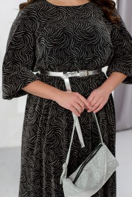 Довга сукня з мерехтливим дизайном – втілення ніжності, жіночності та святкової елегантності. Півкруглий виріз горловини та відрізна лінія талії підкреслюють фігуру, а спадаючі плісовані оборки додають легкості й витонченого руху. Рукави довжиною 3/4 з м’якими резинками на зап’ястках створюють об’єм і делікатний акцент. Вертикальні виточки формують красивий силует, а поясок із комплекту дозволяє обрамити талію, додаючи завершеності образу. Ця сукня м’яко виблискує при кожному русі – ідеальний вибір для особливих моментів, коли хочеться сяяти по-справжньому. Срібний пояс входить в комплект.
