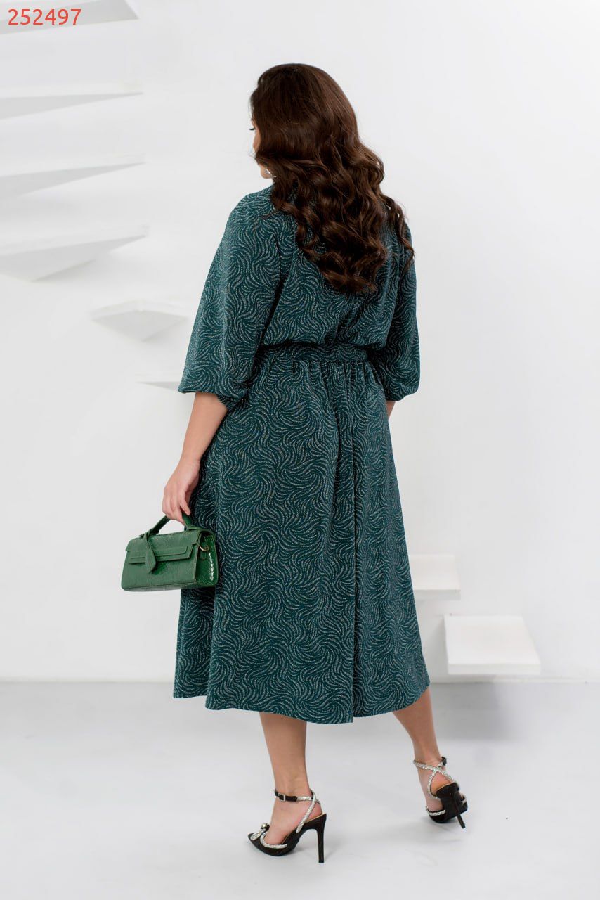 Сукня міді з мерехтливим дизайном – витончений баланс між елегантністю та повсякденною зручністю. Півкруглий виріз горловини, відрізна лінія талії та м’які плісовані оборки створюють ніжний жіночний силует. Рукави 3/4 із легким об’ємом на зап’ястках додають шарму, а поясок із комплекту підкреслює талію. М’який блиск тканини м’яко грає на світлі, надаючи образу святкового настрою навіть у звичайний день. Срібний пояс входить в комплект.
