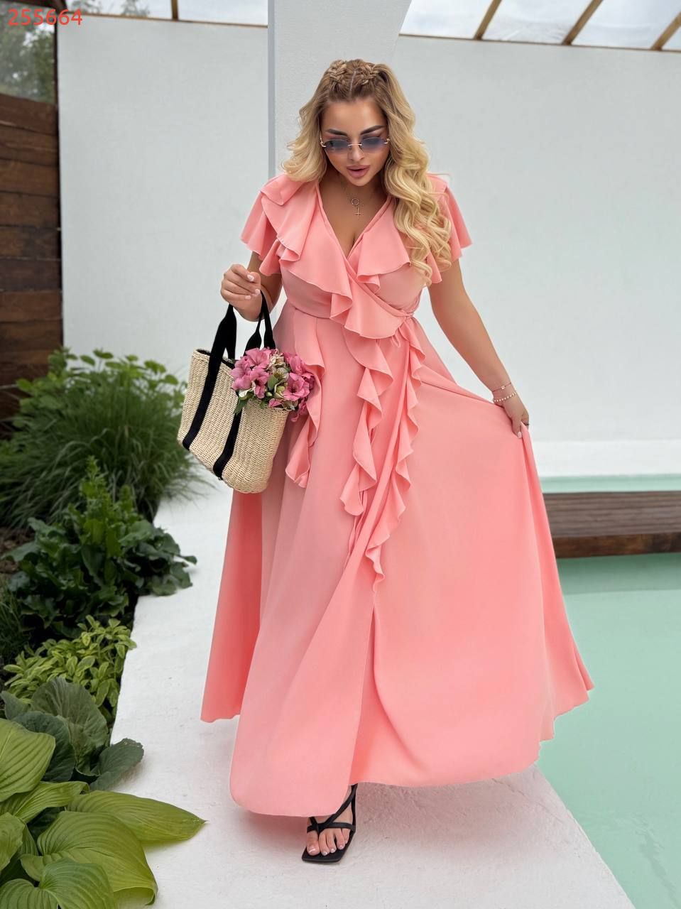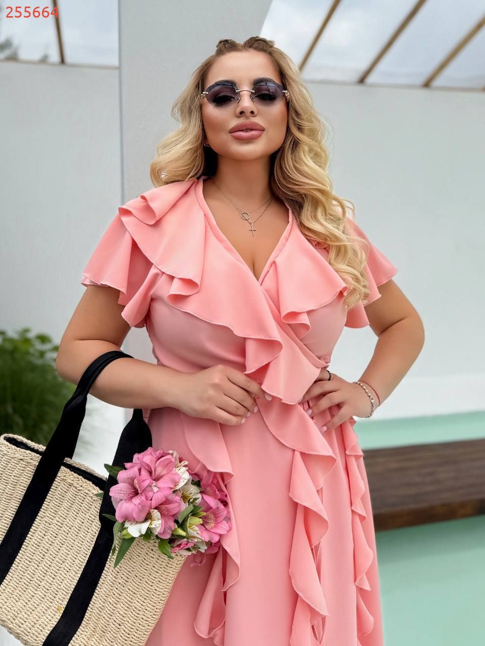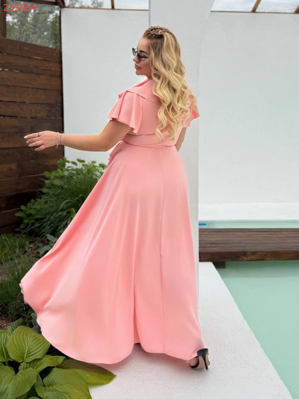 Тканина: софт-шовк. Довжина 143см, одягається на запах. Ідеальна посадка. Спідниця-напівсонце – не повнить. Підкладка спідниці довжиною 47 см. Легке, приємне до тіла. Прикрашення- паси - Тренд цього сезону. Вони роблять сукню повітряною , додають шарм.