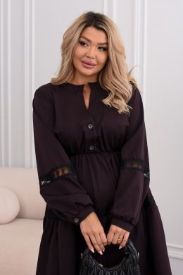 Сукня вільного крою з застібкою на ґудзики до талії. По лінії талії – м’яка резинка для комфортної посадки. Декор із мережива додає ніжності, сукня пасує до кросівок і чобіт, легко комбінується на щодень і на свято.