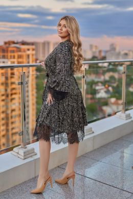 Жіночна сукня на ґудзиках з воланами та акцентом мережива— ідеальне поєднання класики та ніжного стилю.