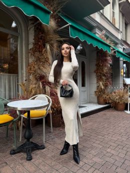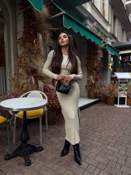 Тканина: Трикотажна сукня максі. Базова модель облягаючого крою з довгим рукавом
