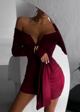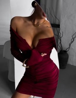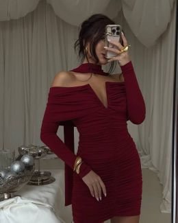 Розкішна сукня для впевнених жінок, які люблять бути в центрі уваги. Ефектна драпіровка по всій довжині та відкрите декольте створюють ідеальний силует. Особливий акцент – знімний шарф, який можна зав’язати навколо шиї або залишити вільно спадаючим для більш вишуканого образу.