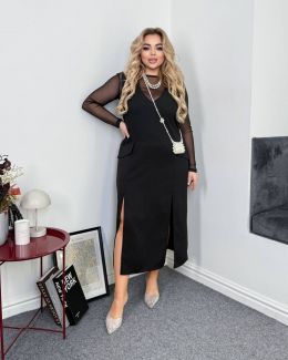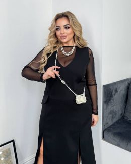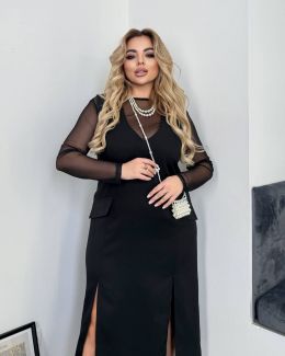 Нарядний комплект : плаття без рукавів , з боків дві кишені -імітації , спереду два розрізи вище колін, V-образний виріз; гольф з довгим рукавом.