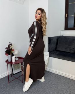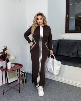 Плаття приталеного крою , прикрашене спереду лампасами в три ряди ( подовжує силует та робить фігуру більш витонченою ).