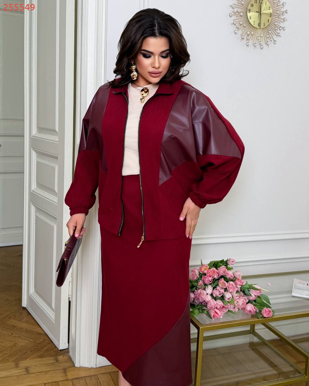 Трендовий костюм з спідницею,класна кофта летучка бордо №255549