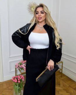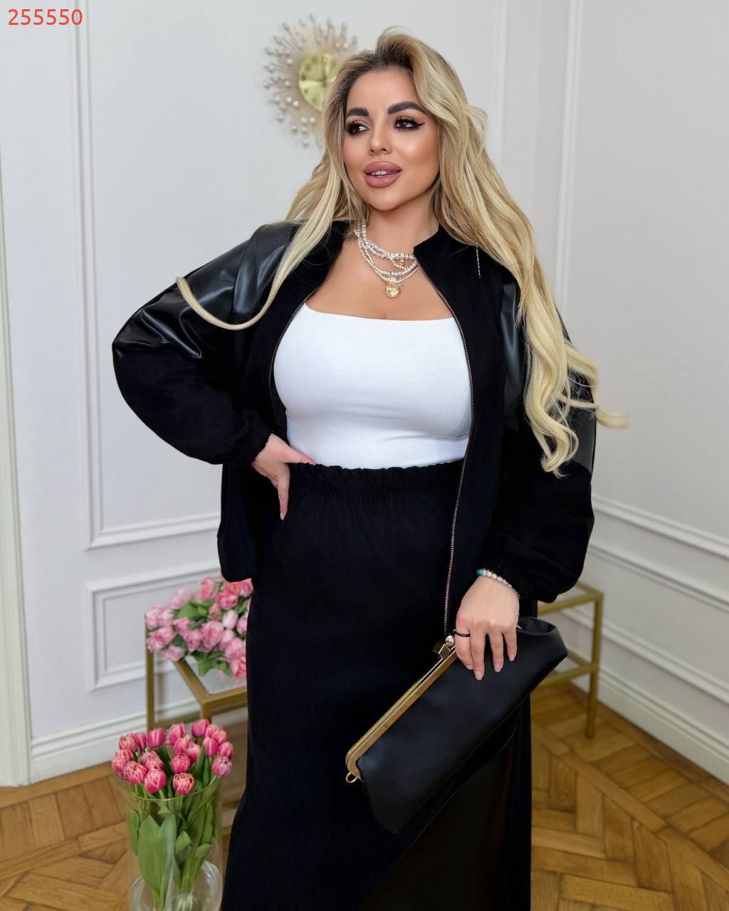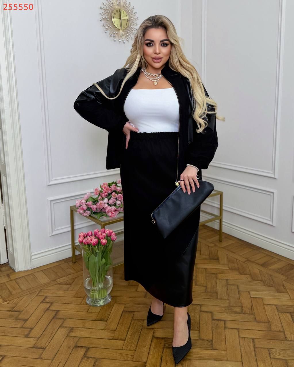 Трендовий костюм з спідницею,класна кофта летучка чорний №255550