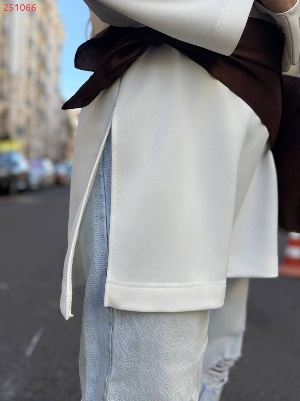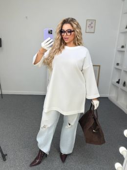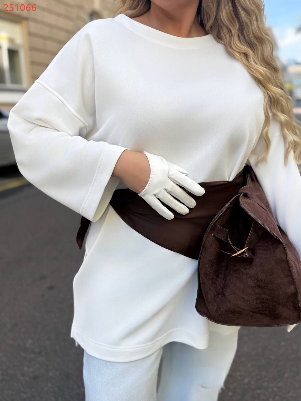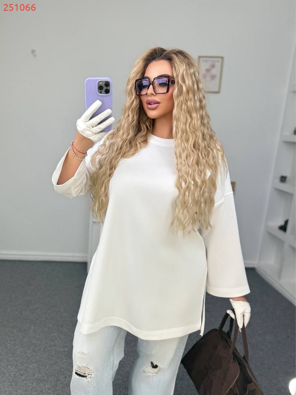 Вільний крій, спущена лінія плеча, розрізи з боків.