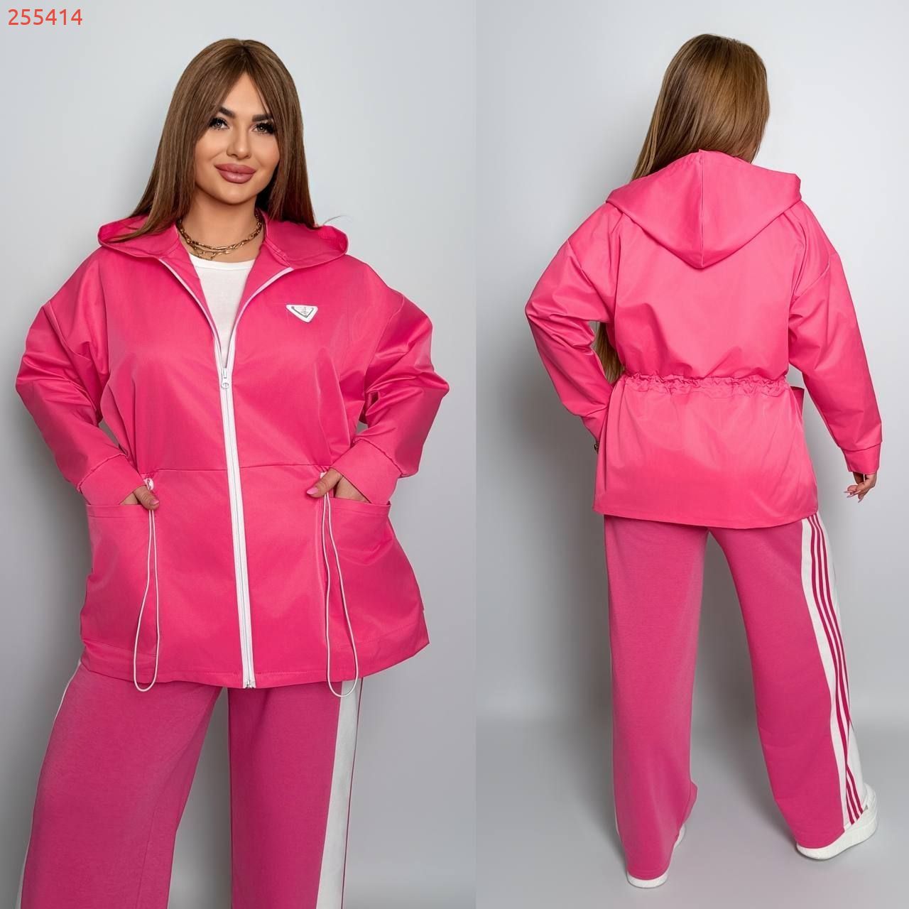 Куртка з капюшоном на блискавці , з кишенями , рукав на гумці , талія на фіксаторі .