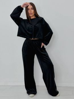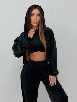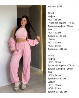 Наша новинка - костюм трійка який складається зі зручного худі на кулісці, стильних штанів які можна носити як джогери і як палаццо і топу. Костюм створений з високоякісної, щільної тканини, яка забезпечує комфорт і зручність