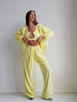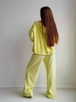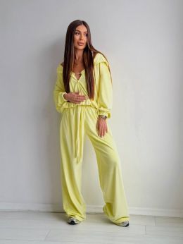 Вільний крій штанів із зав’язкою на талії, топ з фурнітурою, і подовжена кофта на резинці, подвійний капюшон