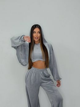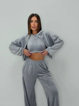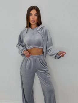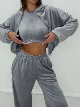 Велюровий костюм трійка сірий №255535