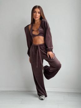 Велюровий Костюм трійка шоколад №255527