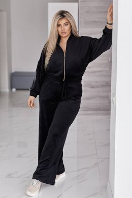 Велюровий оксамитовий костюм складається з кофти і штанів. Кофта вільного крою oversize, з застібкою блискавкою і коміром стійкою. В рельєфних швах спереду є кишені. Рукав зі спущеною лінією плеча, манжети на рукавах та низ кофти на еластичній широкій резинці.