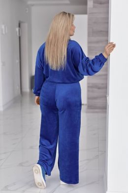 Велюровий оксамитовий костюм складається з кофти і штанів. Кофта вільного крою oversize, з застібкою блискавкою і коміром стійкою. В рельєфних швах спереду є кишені. Рукав зі спущеною лінією плеча, манжети на рукавах та низ кофти на еластичній широкій резинці.