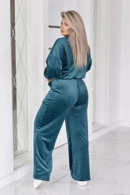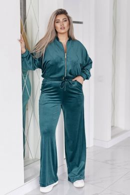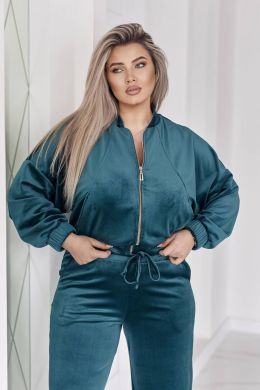 Велюровий оксамитовий костюм складається з кофти і штанів. Кофта вільного крою oversize, з застібкою блискавкою і коміром стійкою. В рельєфних швах спереду є кишені. Рукав зі спущеною лінією плеча, манжети на рукавах та низ кофти на еластичній широкій резинці.