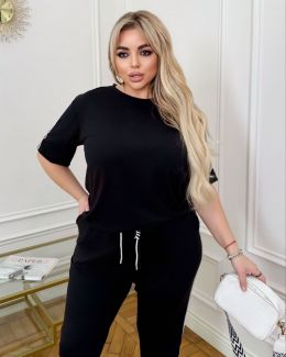 58-60 Об'єм грудей футболки - 134 см, Довжина футболки - 73 см, Довжина рукава - 29 см, Об'єм талії штанів - 96 см (розтягується до 134 см) , Об'єм стегон штанів - 134 см, Довжина штанів - 105 см.