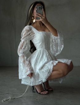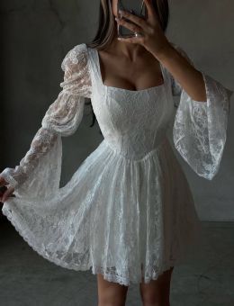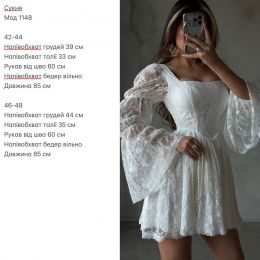 Вишукана мереживна сукня з пишною спідницею та обʼємними рукавами. Ідеально підійде до будь-яких свят. Має підклад та не світиться. Приємна легка тканина. Збоку йде потайна змійка.